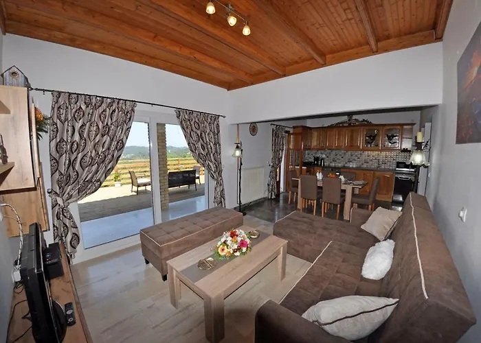 Die Villa Angelko Kavvadades umfasst drei geschmackvoll eingerichtete Schlafzimmer und ein gemütliches Wohnzimmer. Die klimatisierten Zimmer sind mit einem Flachbild-TV sowie schalldichten Fenstern ausgestattet, die für Ruhe und Komfort sorgen. Eine voll ausgestattete Küche mit Kühlschrank und Kaffeemaschine lässt keine Wünsche offen.